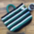 Striped Crochet Bag - Navy & White with Red trim